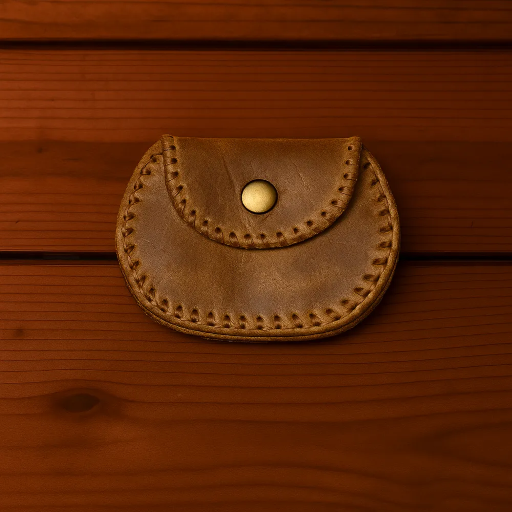 Explora nuestra colección de monederos de cuero, incluyendo este modelo en un clásico tono marrón. Cuenta con un cierre a presión fácil de usar y un borde cosido que le añade durabilidad y un toque artesanal. Su tamaño práctico lo hace ideal para guardar monedas y billetes doblados de forma segura. Un monedero de cuero clásico que nunca pasa de moda. ¡Encuentra tu monedero de cuero marrón con cierre a presión perfecto!